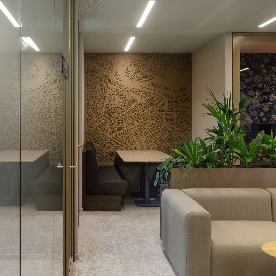 Le feutre PET est fabriqué à partir de bouteilles PET recyclées et est apprécié pour son effet acoustique. Le matériau absorbe le son et réduit la réverbération, ce qui rend un espace immédiatement plus agréable. Il offre en plus une apparence chaude et douce qui contribue à une ambiance confortable. Comme le feutre PET est léger, tu peux le monter ou déplacer facilement, et il se prête parfaitement au sur-mesure en formes, motifs et couleurs. Tu crées ainsi des zones sans fermer l’espace, sans l’assombrir et sans interventions structurelles.