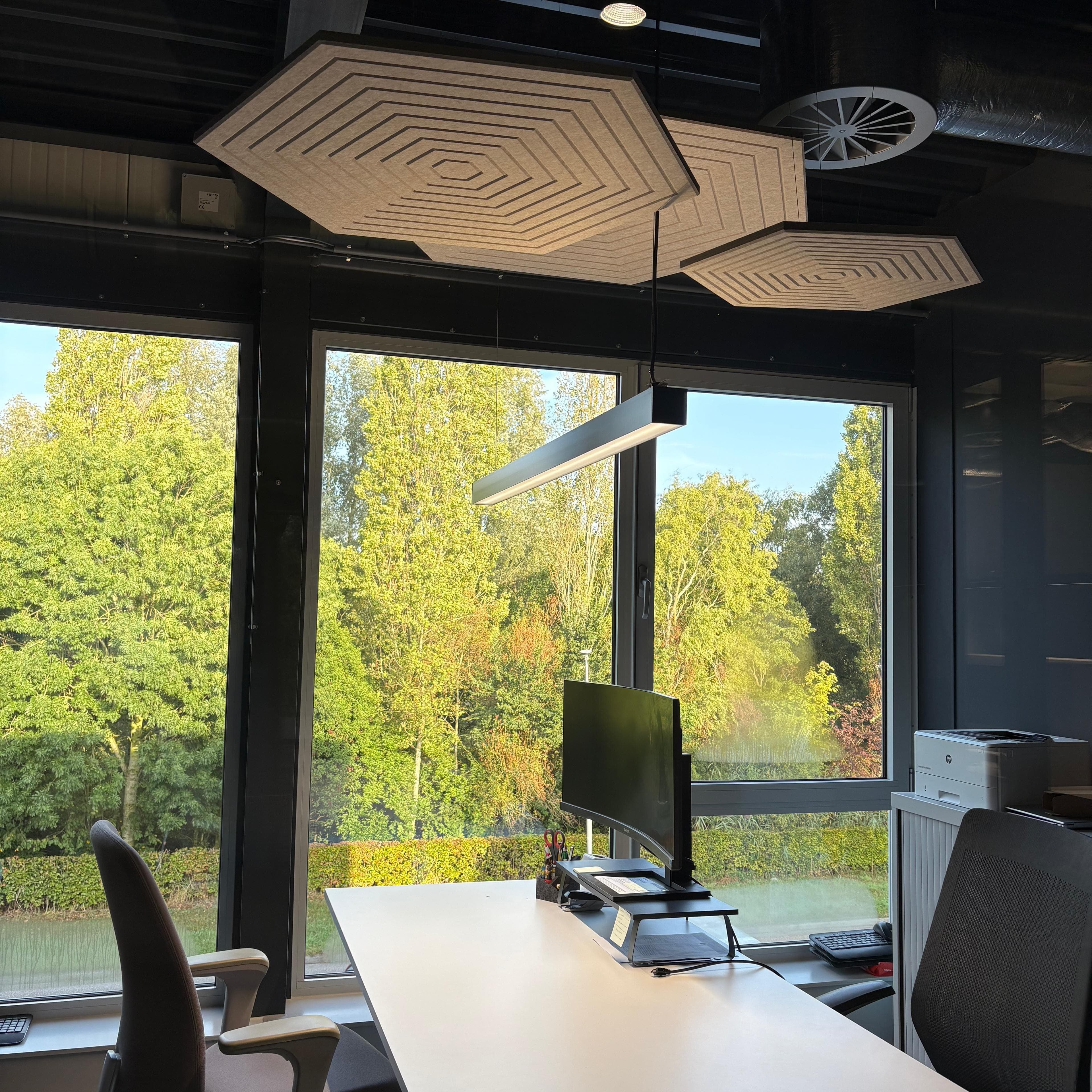 De plus, nous vous conseillons de toujours prendre contact avec nous. En fonction de l'espace, l'effet acoustique varie considérablement. Certains espaces nécessitent plusieurs solutions ou un feutre plus épais pour améliorer notablement l'acoustique, tandis que dans d'autres cas, une application plus fine suffit déjà à obtenir un résultat satisfaisant.