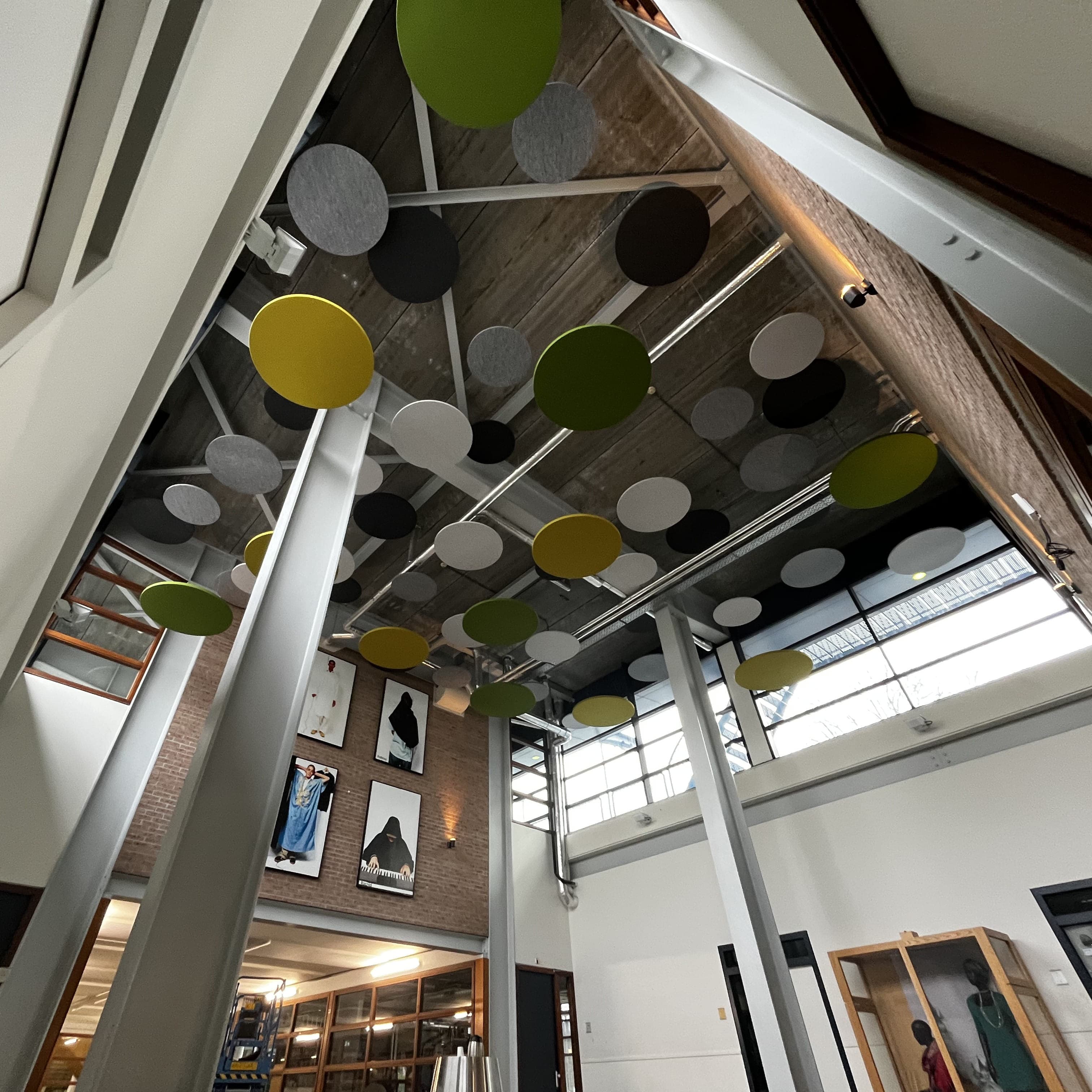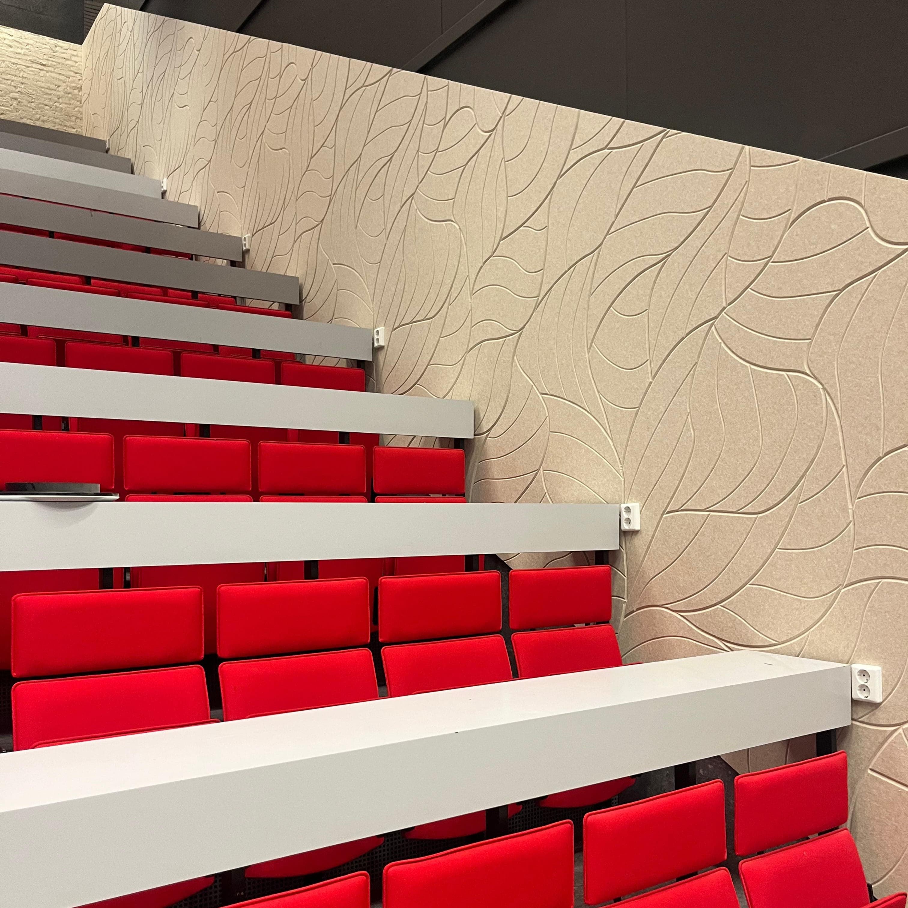 Le résultat final est une séparation moderne et fonctionnelle qui équilibre l'espace ouvert. Une combinaison d'acoustique, de design et de couleur, parfaitement adaptée au environnement de l'université.